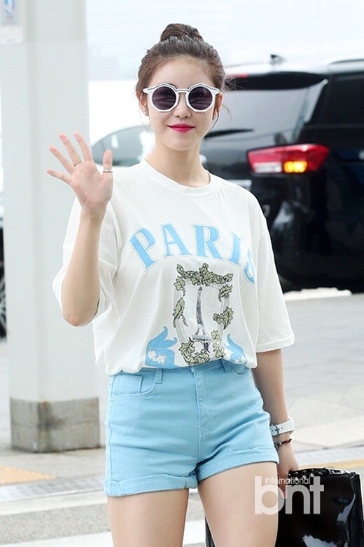 27日下午,韩国女子组合Secret成员全烋星现身仁川国际机场,前往中国参加Mnet电视台“M Countdown in China”,丸子头搭配天蓝色短裤清新活泼。
