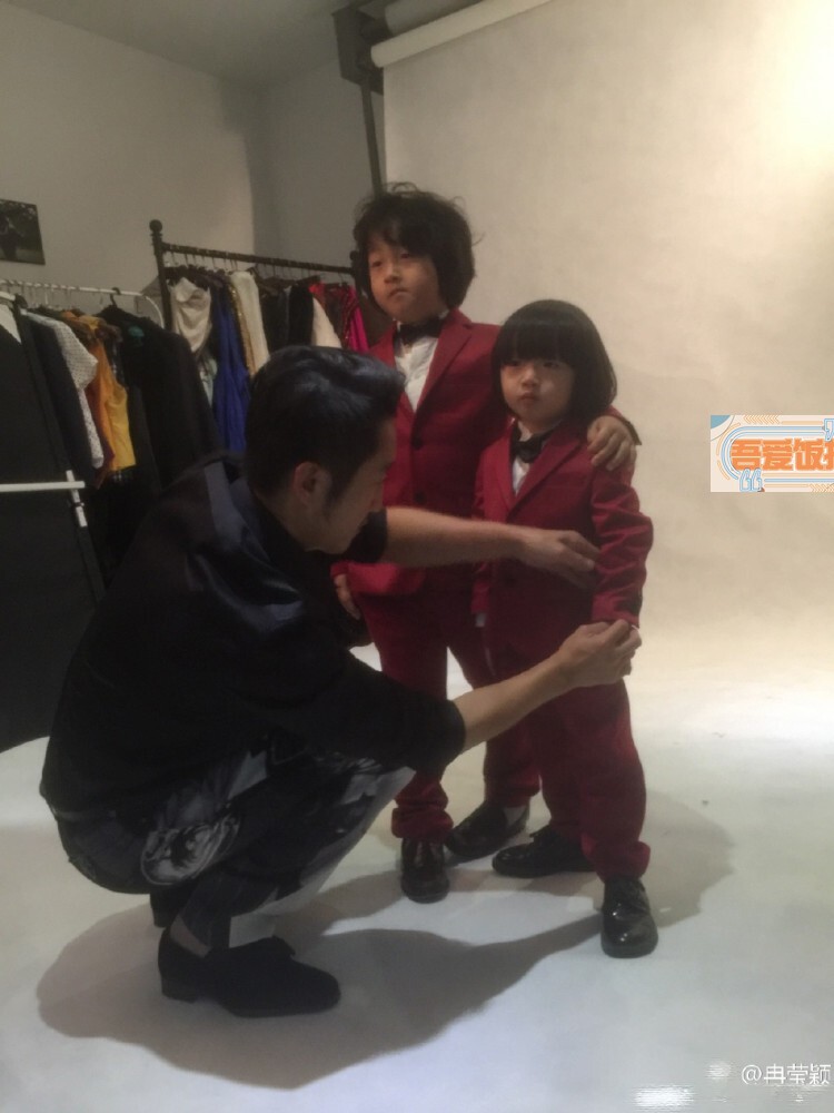 11月22日晚,冉莹颖更新微博,晒出一家四口拍摄写真的照片,照片中她的两个儿子轩轩和皓皓身穿红色小西装,打着黑色领结,轩轩一只手搂着弟弟表情酷酷的,邹市明则蹲在地上给两个儿子整理西装。