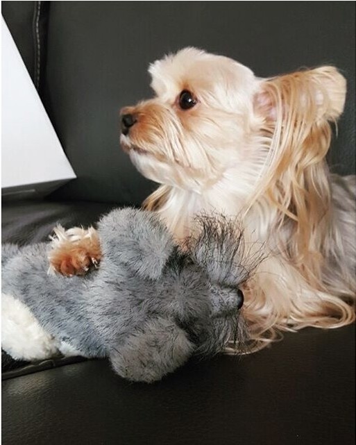 11日晚,少女时代秀英通过自己的Instagram帐号发表新动态,"姐姐,她不是Yuki是Schnauzer啦。"挨着人偶的萌狗狗,真的好漂亮好萌啊!