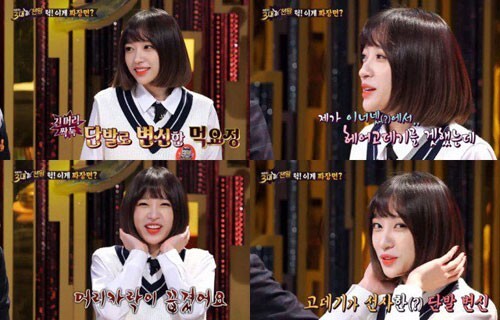 就在 (4月16日) 播出的 SBS 综艺节目《白钟元的三大天王》中,Hani 亲自向大家分享剪短头发的真正原因,解开大家的疑惑:「其实… 我是在网路上买了捲发器,但在使用的过程中,头发断了。我猜想可能是因为本身发质就已经损坏了,所以就剪短头发啰!」