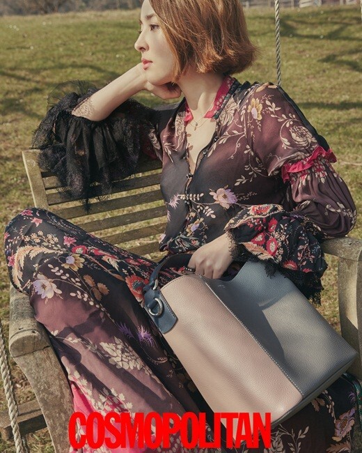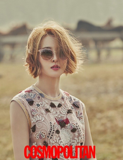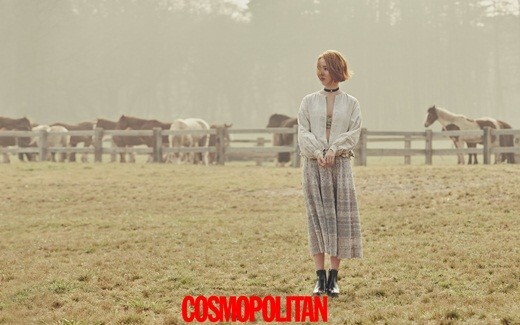 在拍摄的写真中,韩惠轸展现了不同于以往的另一面。全新的充满魅惑的金色短发搭配或性感迷人的雪纺纱裙或中性的马甲,站在一片宽阔的农场上,充满了异域风情,不变的美丽容貌让人完全难以想像她已经是一个孩子的母亲。