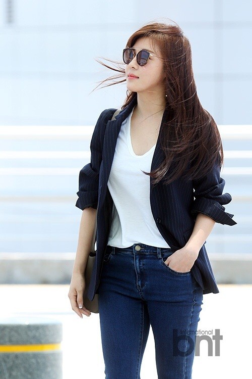艺人河智苑飞中国参加博览会 牛仔裤白衫尽显女神风范
